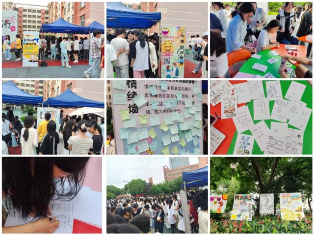 5月22—23日的心理趣味日构建起立体化互动场景:“心语传声筒”通过302张匿名明信片搭建情感树洞,创造非评判性表达空间;“情绪交换铺”收到213条情绪便签,实现“烦恼减半,快乐加倍”的群体疗愈;心理知识竞答以趣味化形式普及危机识别技能,500余人次参与答题,不少学生反映:“竞答错误竟让我记住了危机干预热线号码”。心理艺术展通过展出心理主题海报、曼陀罗绘画及爱自己的100种方式漫画形成学生“心灵疗愈站”,以艺术为媒介解码心理成长,将抽象心理概念转化为“正念呼吸”“善意社交”等具体行动指南,为学生在今后调节情绪时提供良好思路。同期开展的治愈系音乐点播、主题班会等活动,形成课内外联动的心理健康教育生态。