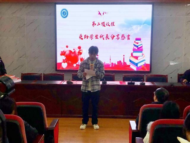 会上,团委书记李梦茹首先介绍了2024年爱心基金发放的基本情况。随后,受助学生代表符毅同学上台发表感言,并代表受助的127名同学向学校领导、老师和同学们表示衷心的感谢,表示会珍惜学习机会,坚定报国理想,刻苦学习,积极进取,自强不息,不辜负学校的期望。