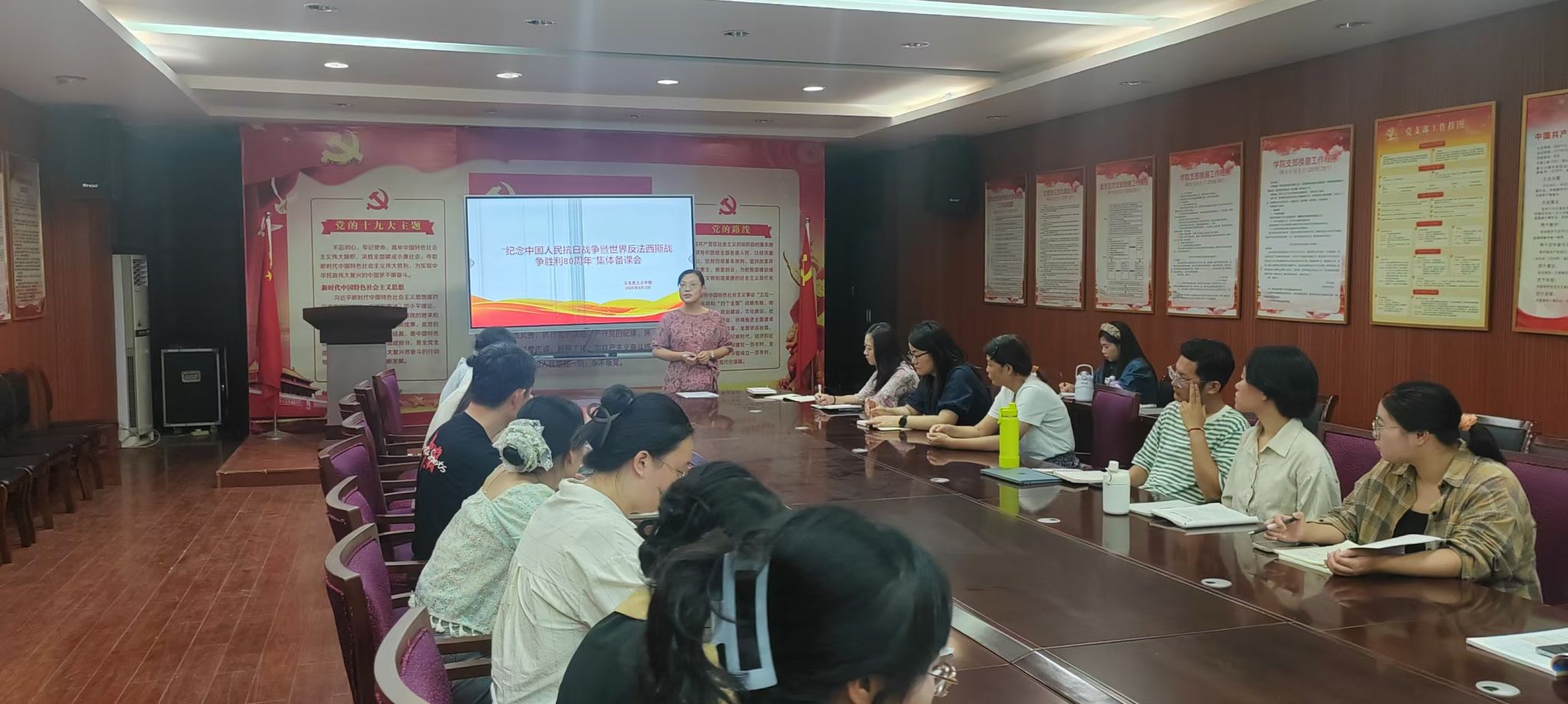 阅兵仪式结束后,学院各个教研室紧锣密鼓地组织了集体备课会,其中德法教研室重点围绕“思想道德与法治”课程专题一“担当复兴大任 成就时代新人”如何有效融入阅兵元素和抗战精神进行深入研讨。备课会上,教师们一致认为,思政课作为立德树人的主渠道,必须准确把握抗战胜利80周年的教育契机,将观看阅兵带来的情感冲击转化为理性的教学资源。