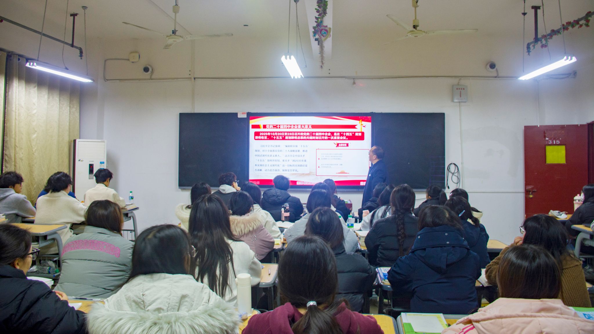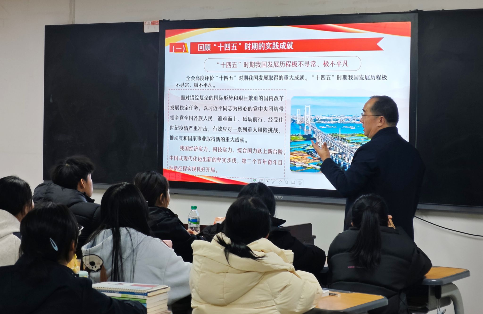 宣讲中,江耀武书记围绕“承前启后:深刻领会全会重大意义”“领航掌舵:系统回望过往发展成就”“擘画蓝图:精准把握科学规划内涵”“一以贯之: 锚定未来航向”“青春担当:笃行实干勇担时代使命”五大维度,为同学们进行了层层深入的解读。他从全会召开的时代背景切入,深刻阐释了其在全面建设社会主义现代化国家进程中的里程碑意义;通过梳理新时代以来我国在经济、科技、民生等领域的辉煌成就,引导学生感悟党的领导是发展的根本保证;结合“十五五”规划的战略部署,明晰青年一代在国家发展蓝图中的定位;最后聚焦青年担当,强调新时代高职学生肩负的使命责任。
