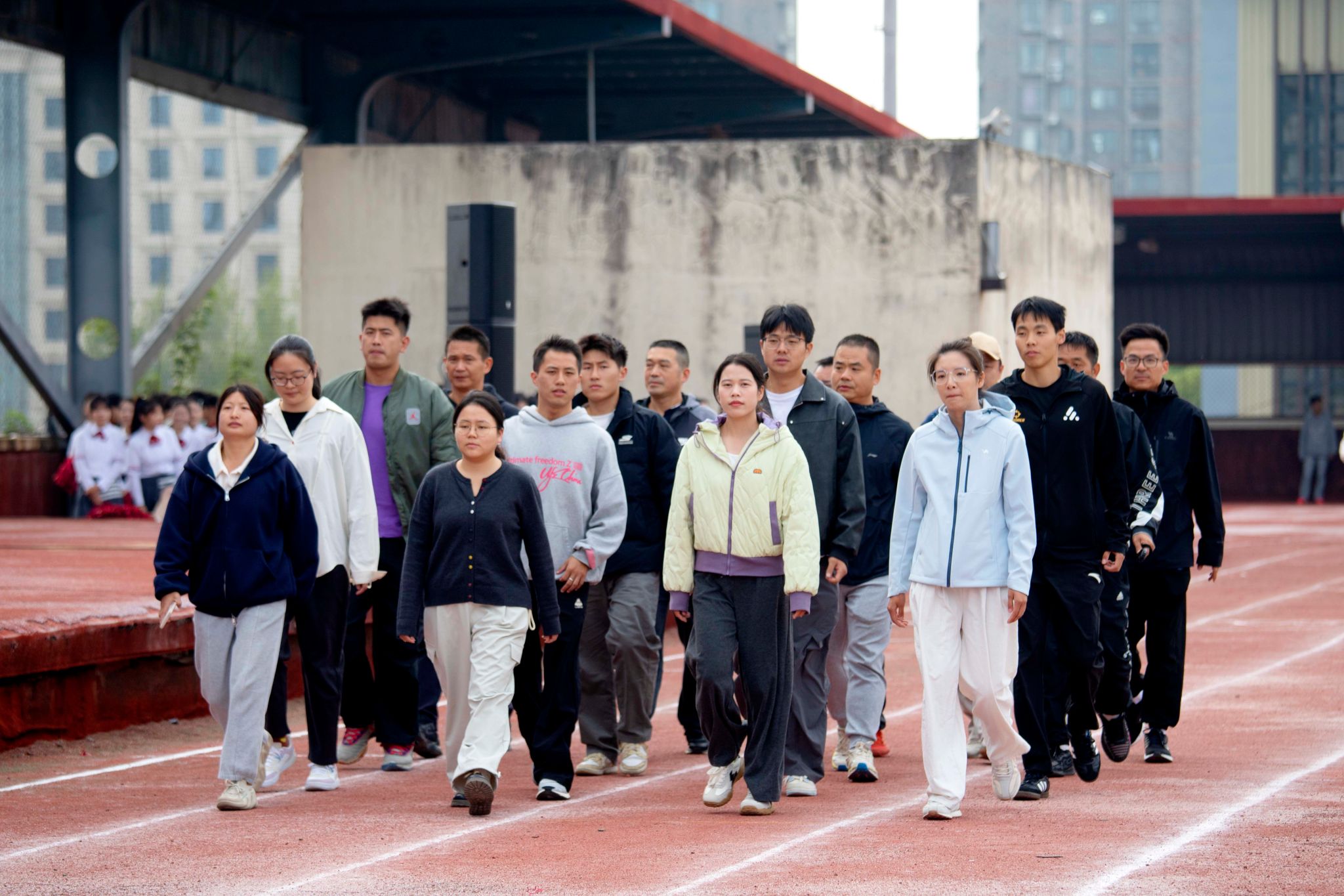 各专业班级代表队则创意十足,有的以特色口号喊出专业风采,有的以简约队列呈现团队凝聚力,嘹亮的呐喊声、整齐的脚步声、热烈的欢呼声交织回荡,构成一幅鲜活生动的青春画卷,引得全场观众掌声不断、喝彩连连。