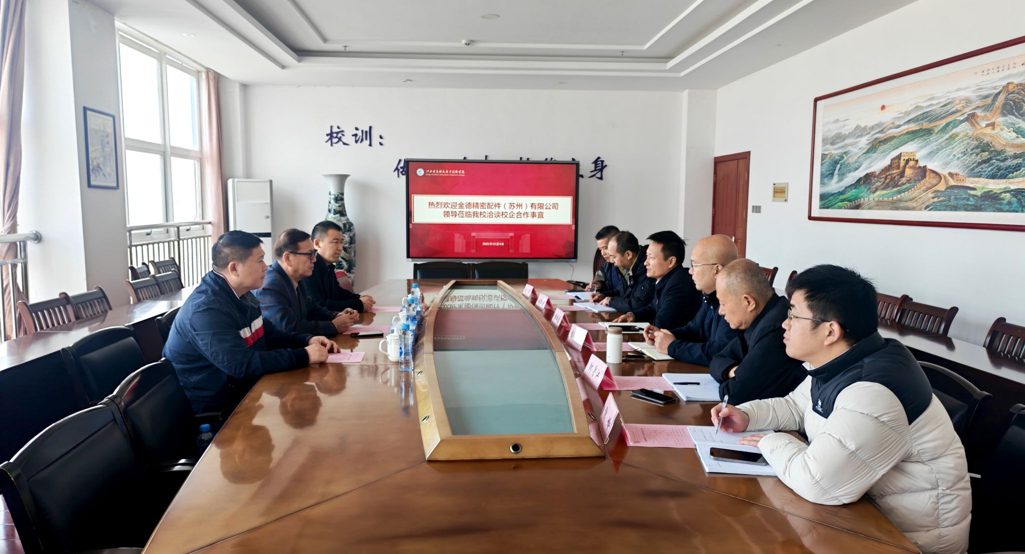 此次洽谈为双方进一步深化合作奠定了坚实基础,下一步学校将与金德精密配件(苏州)有限公司细化合作方案,在人才联合培养、实习基地建设、就业渠道拓展等方面推进务实合作,助力学生高质量就业,为区域产业发展提供坚实人才支撑。(初审:杨林/复审:刘四连/终审:肖敏)
