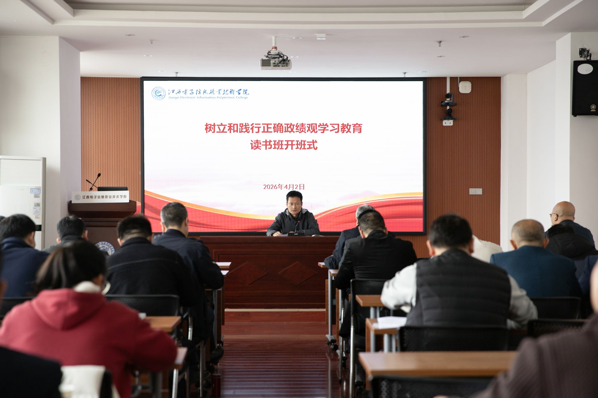 4月1日至4月3日,江西电子信息职业技术学院举办树立和践行正确政绩观学习教育读书班暨党委理论学习中心组学习(扩大)会议。校党委书记肖红秋作动员讲话和总结讲话,党委副书记、校长游振磊主持开班式。校党委班子成员、副处级干部、中层干部参加。