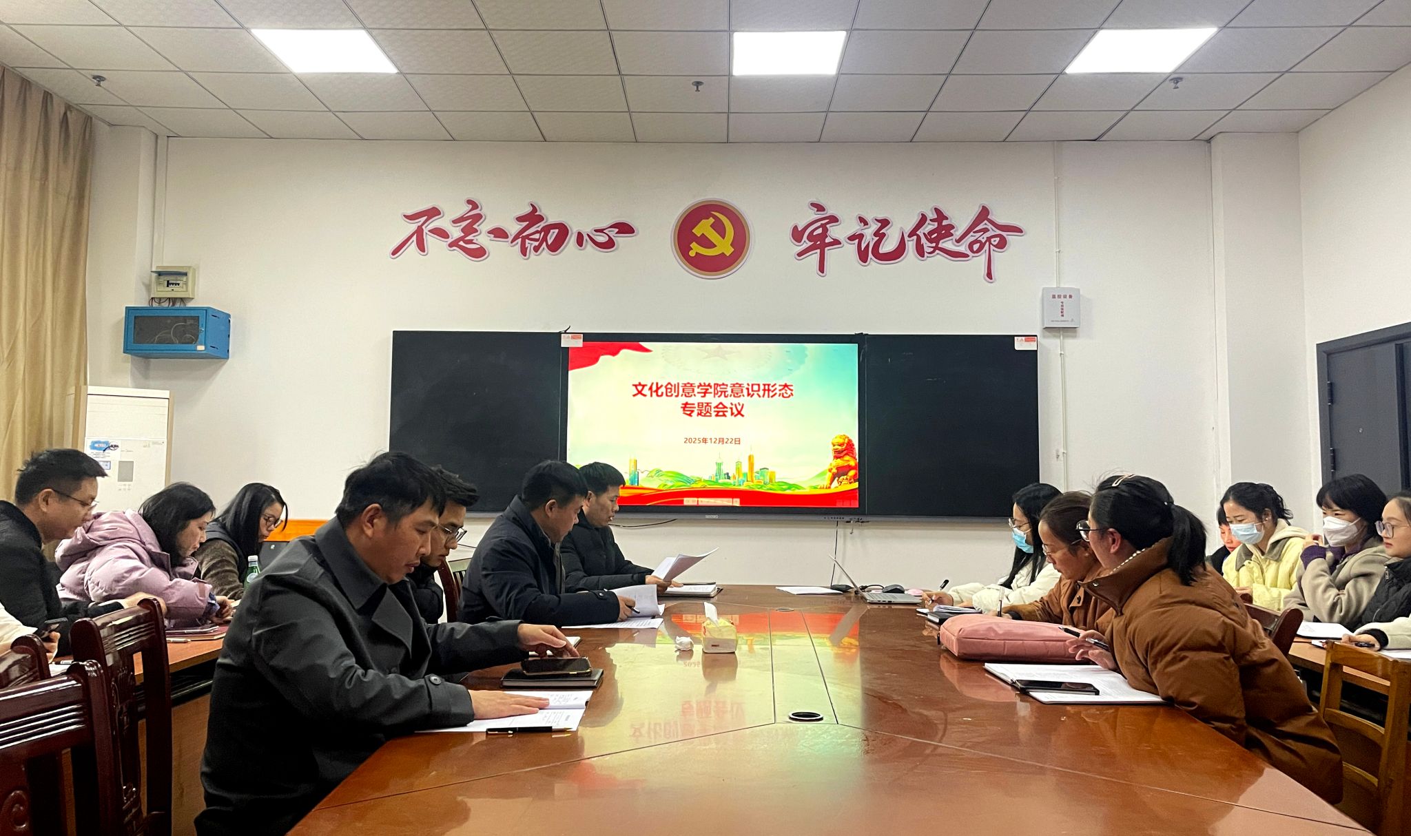 12月22日下午,文化创意学院召开意识形态工作专题会议,深入学习领会习近平总书记关于意识形态工作的重要论述和指示精神,研究部署学院当前及今后一个时期意识形态领域重点工作。